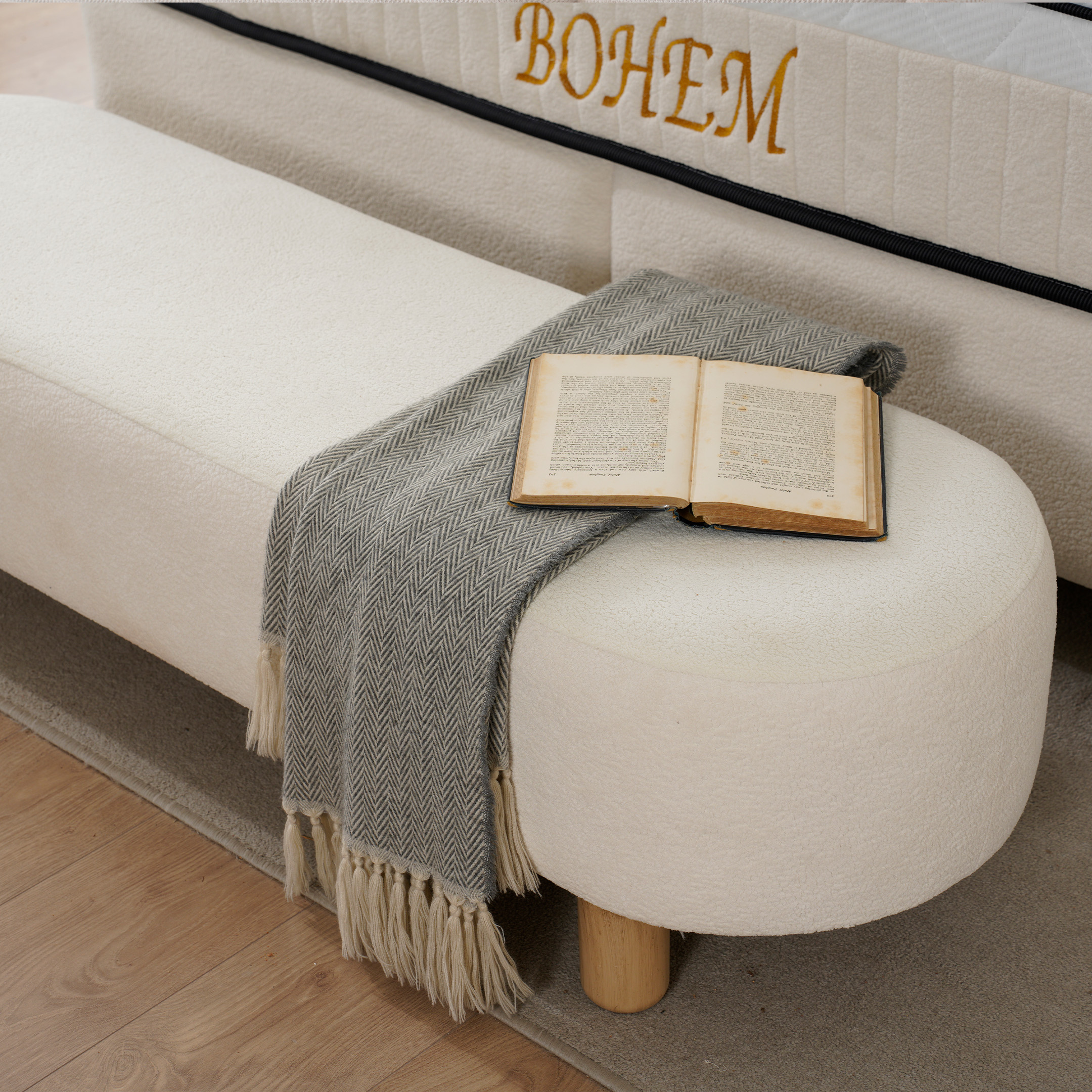 Yumuşak hatlarla tasarlanan yuvarlak başlık formu ve sade çizgiler, yatak odasında sakin ve davetkâr bir atmosfer oluşturur.