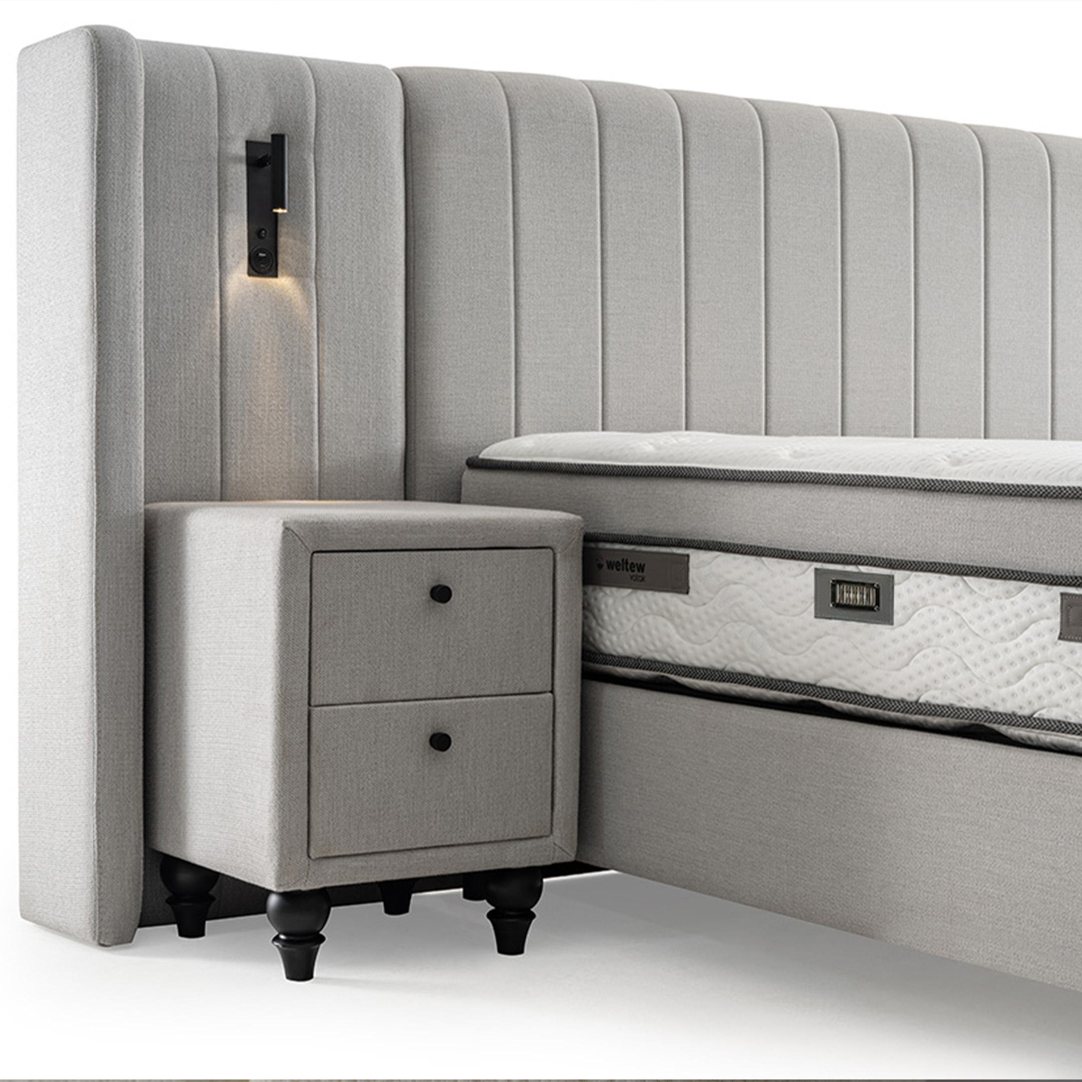Yumuşak dokular ve dengeli form anlayışıyla tasarlanan yapısı, yatak odasında huzurlu ve davetkâr bir atmosfer oluşturur.